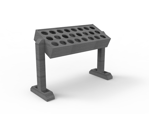 Divot bottle storage station you can design yourself! Store 16-40 divot mix bottles conveniently and efficiently. This model features an angled design for golf cart riders who like their divot mix, drive-thru style.