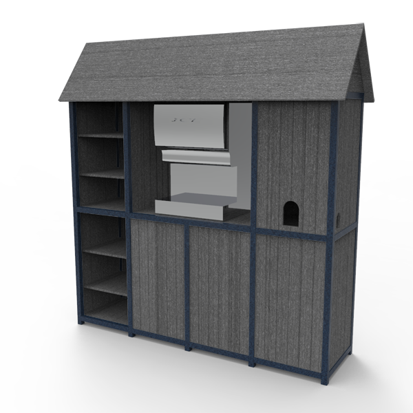 Use the convenient open shelves to dispense fresh towels or other amenities. Durable unit can be used indoors or outdoors and includes lockable storage in addition to the open shelving.