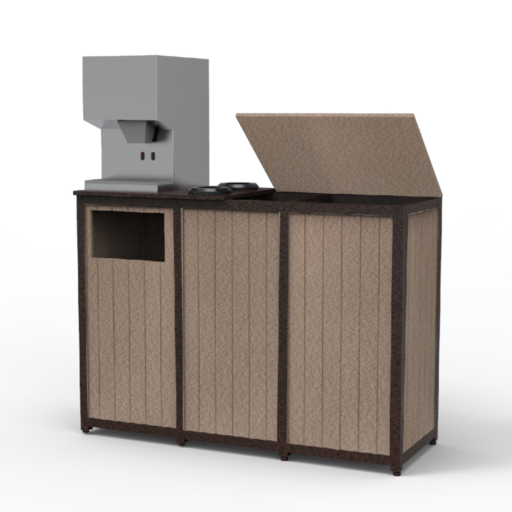 Outdoor golf refreshment center has a low profile and all the features you need to help golfers beat the heat and stay comfortable. Use this beverage station to dispense ice, water and cups. Includes a convenient waste receptacle to keep waste in its place and off your golf course.