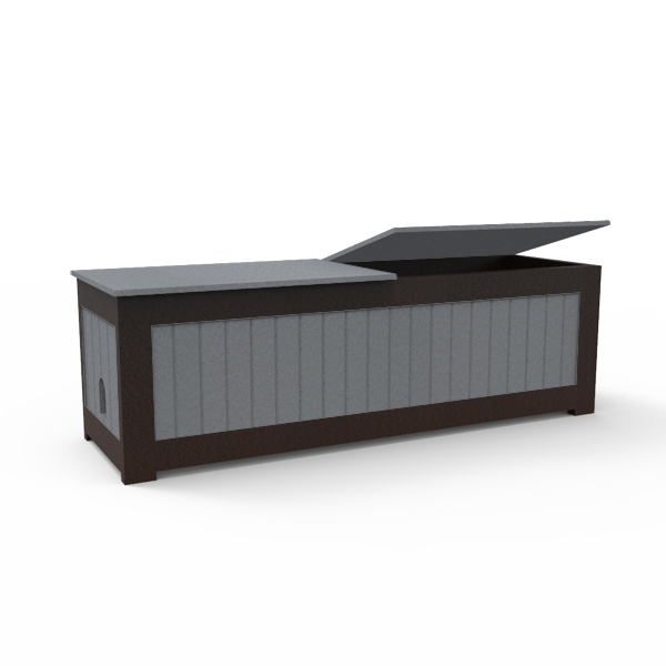 Golf ice chest enclosure in recycled plastic features a split lid design that helps you keep refreshing drinks, snacks, or chilled towels cold longer. Open each side independently while allowing the other side to stay cool. Optional compression dampers can be added to ensure lids close quietly.